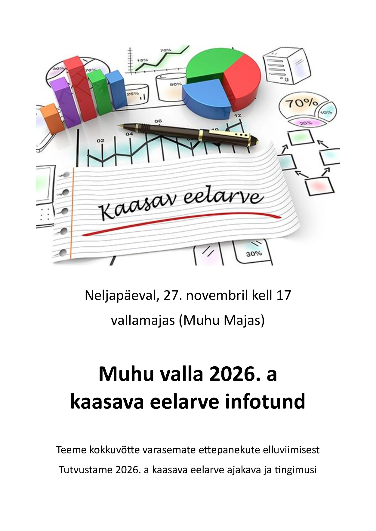 2026. a kaasava eelarve ettepanekute esitamine algab 3. novembril 2025 ning kestab kuni 15. detsembrini 2025. Ettepaneku vorm ja lisainfo on leitav Muhu valla veebilehelt https://www.muhu.ee/kaasav-eelarve .