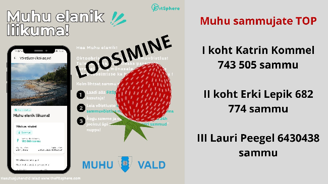 Oktoobris toimus suur sammuvõistlus "Muhu valla eeskujul iga Muhu elanik liikuma!" FitSphere äpp registreeris sammud ning suur tänu osalejatele, järgmine sammuvõistlus juba aastal 2026. ...