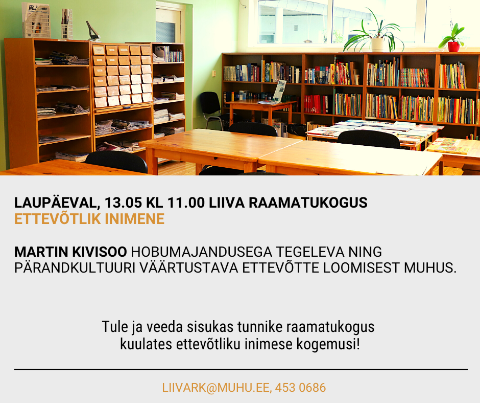 | Asukoht: | Liiva Raamatukogu, Liiva küla, Muhu vald, Saare maakond |