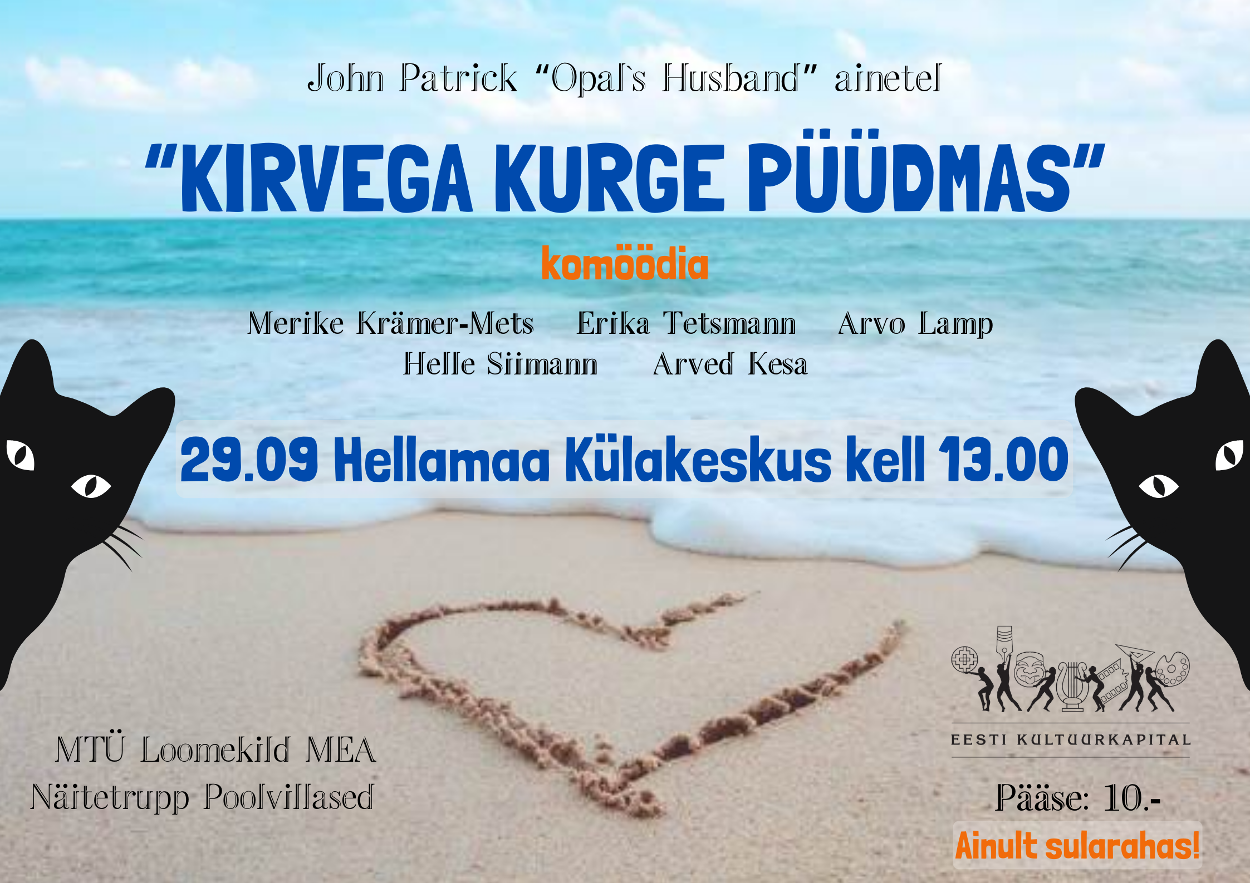 Hellamaa Külakeskuses 29.09 kell 13.00 komöödia "Kirvega kurge püüdmas"
