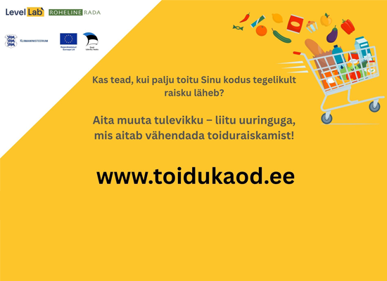 Kutsume Teid osalema uuringus, mille eesmärk on välja selgitada, kui palju tekib Eesti kodumajapidamistes toidujäätmeid. Uuringut viivad Kliimaministeeriumi tellimusel läbi LevelLab OÜ ja OÜ Roheline Rada. Osaledes toidukadude uuringus, saad teada, kui palju toitu kodus tegelikult raisku läheb ja kuidas seda vähendada.