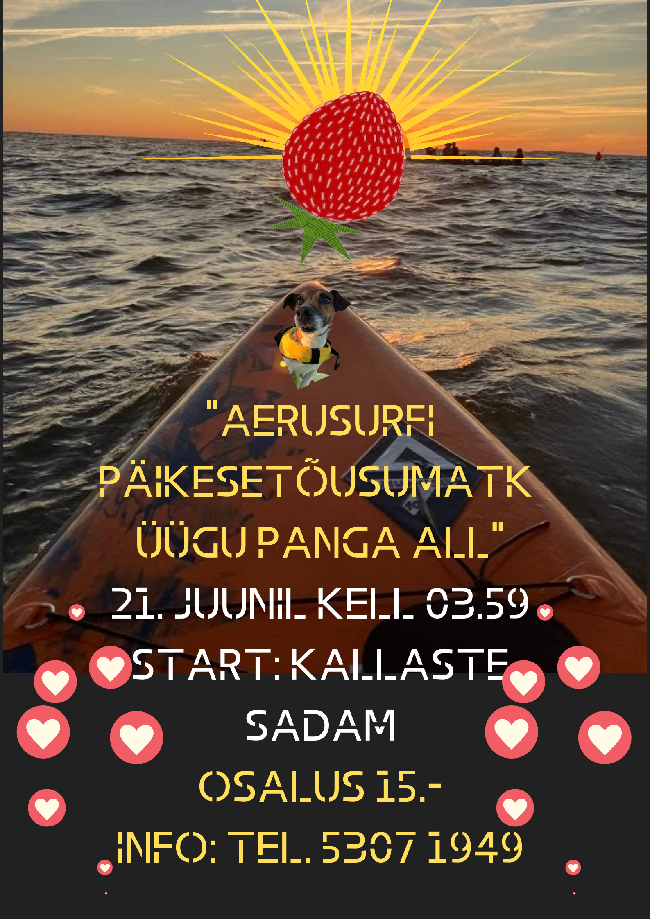 Saame kokku 21. juuni varahommikul kell 3.59 Kallaste sadamas! Varustus ja instruktsioon kohapeal. Pilet 15 eurot.